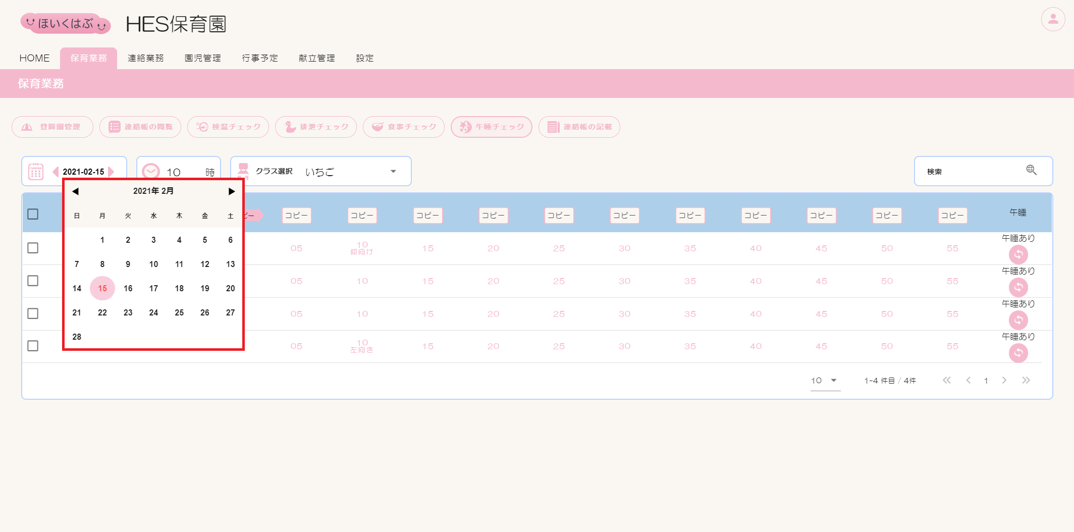 ヘッダーメニュー【保育業務】のドロップダウンメニューからも移動可能です。