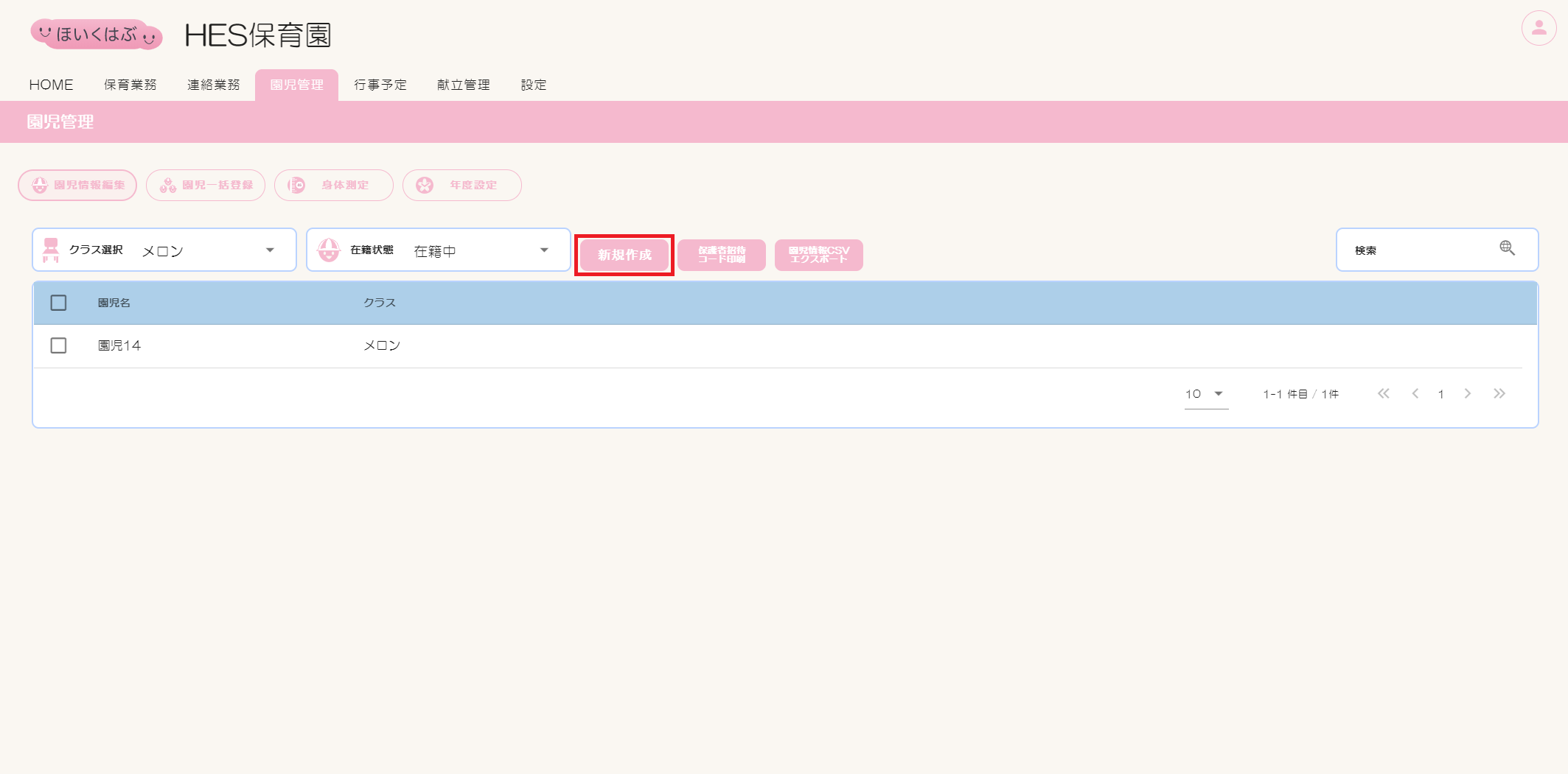 ヘッダーメニュー【園児管理】のドロップダウンメニューから【園児情報編集】を選択します。